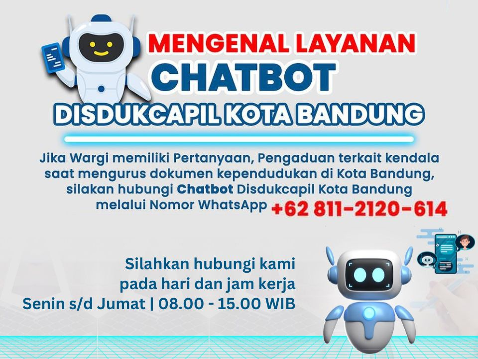 Jika Wargi memiliki pertanyaan, pengaduan terkait kendala saat mengurus dokumen kependudukan di Kota tuban, silakan hubungi Chatbot Disdukcapil Kota tuban melalui Nomor Whatsapp +62 811-2120-614 Silahkan Hubungi Kami selama hari dan Jam kerja (Senin-Jumat 08.00 - 15.00 WIB)